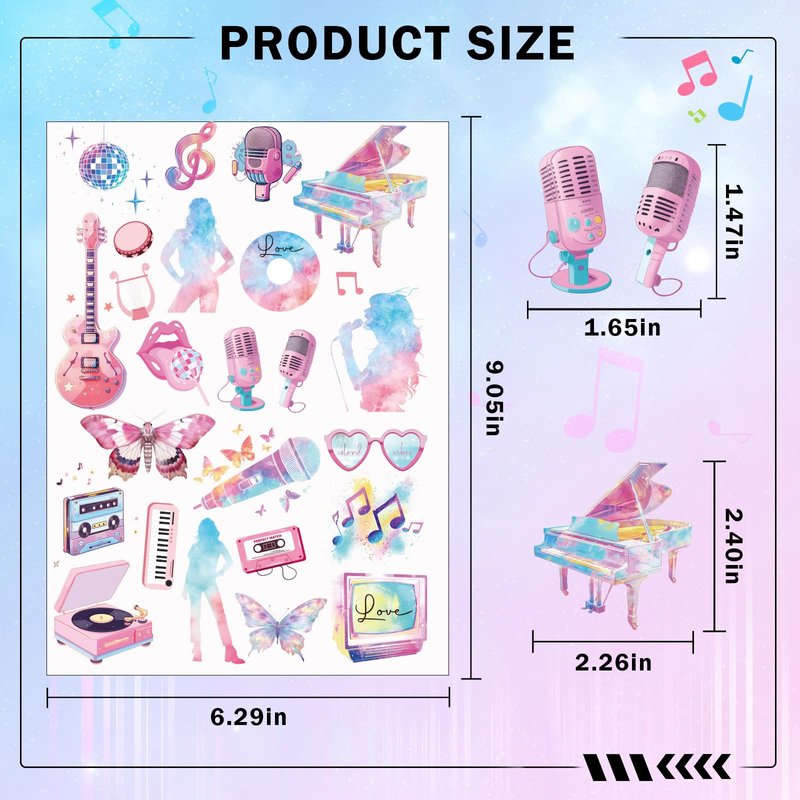 - Applicable Occasions: Our singer-themed party tattoo stickers are not only suitable for birthday parties, music parties, etc., but can also be used for daily decoration. Stick them on your water cup, book, laptop or any smooth flat surface as a unique decoration.