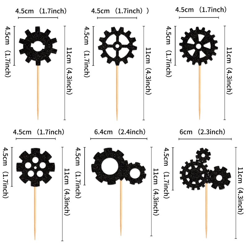 - Package/Size:24 pcs cupcake toppers,4pcs of each design, Handmade and Pre-assembled. - Size: 2.5*4.5 inch / 2.6*4.5 inch / 2.4*3.6 inch / 2.5*4.5inch(including stick)