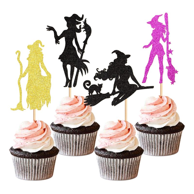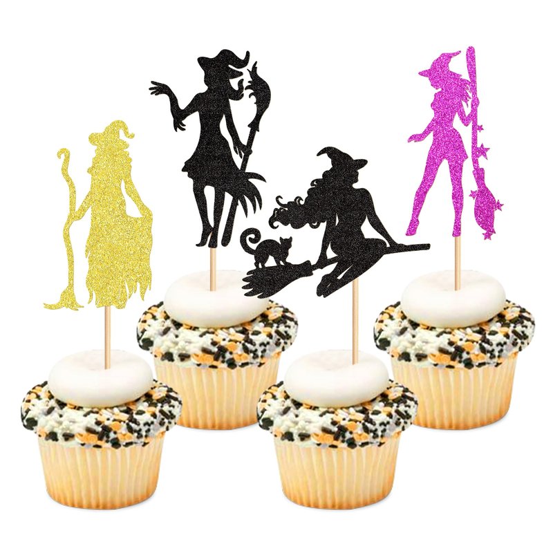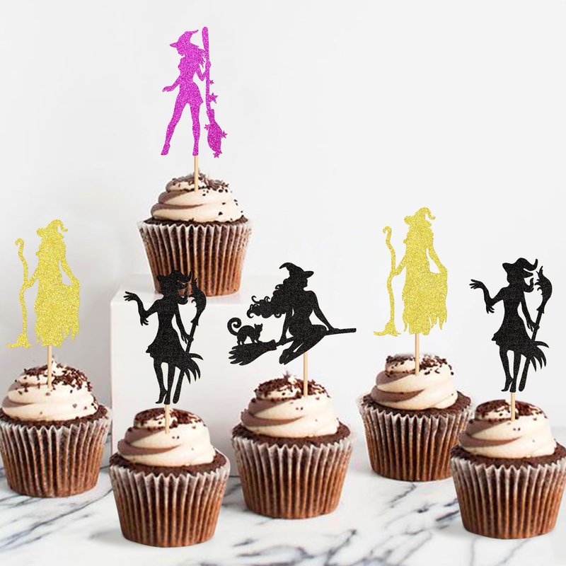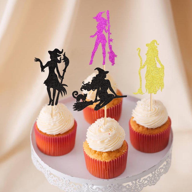 Ercadio 24Pcs Halloween Witch Cupcake Toppers Glitter Colorful Witch Cupcake Picks for Halloween Theme Baby shower Kids Birthday Party Supplies