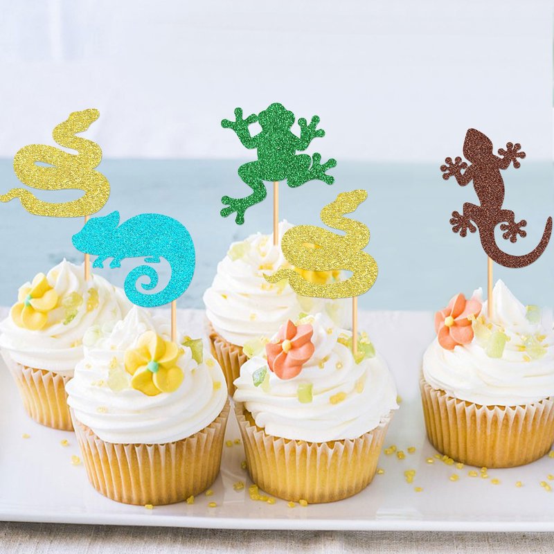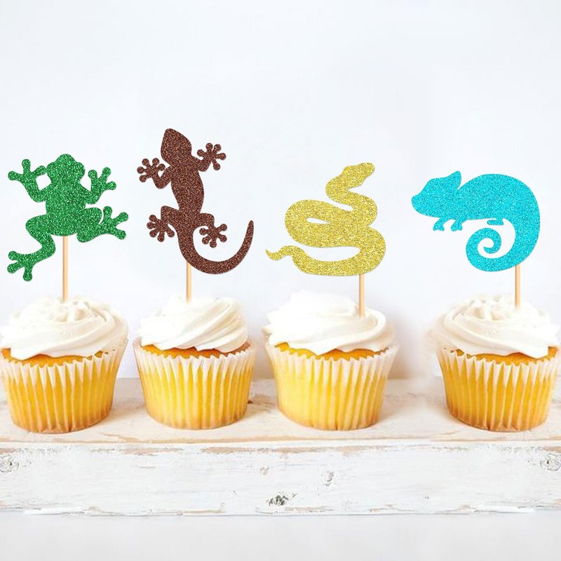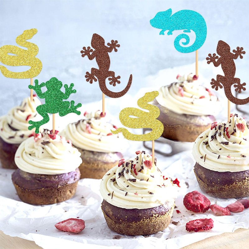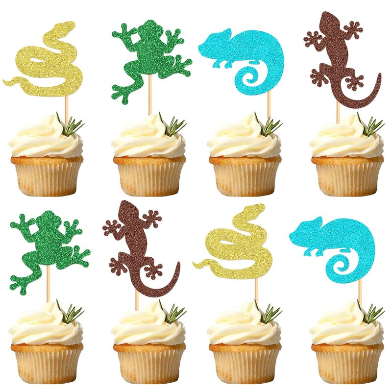 Ercadio 28 Pack Animal Cupcake Toppers Snake Cupcake Picks Frog Chameleon Gecko Cupcake Kids Birthday Cupcake Decorations for Baby Shower Birthday Animal Theme Party Cake Decor Supplies