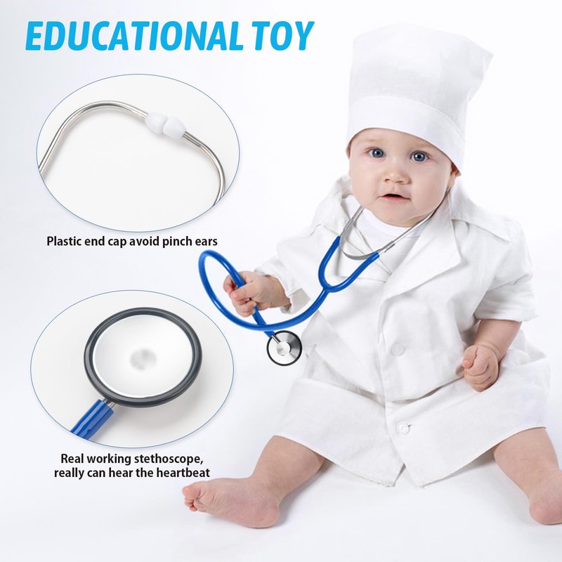 - REAL WORKING STETHOSCOPE: Our kids doctor coat comes with a play stethoscope, you child can really hear the heartbeat. These toy doctor kit will allow your children to truly participate in pretend play, helps kids learn more about doctors, and stimulates their imagination.