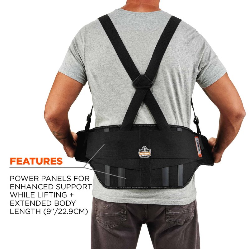 Ergodyne - 11107 ProFlex 1600 Back Support Brace, 9" Extended Support, High Cut Front For Mobility Black
