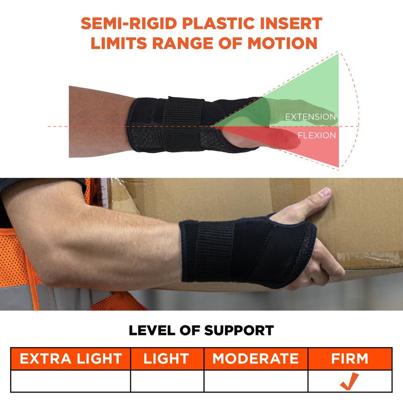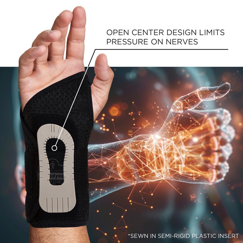 Ergodyne ProFlex 4005 Wrist Brace, Splint Open Stay for Structured Wrist Support, Adjustable Single Strap