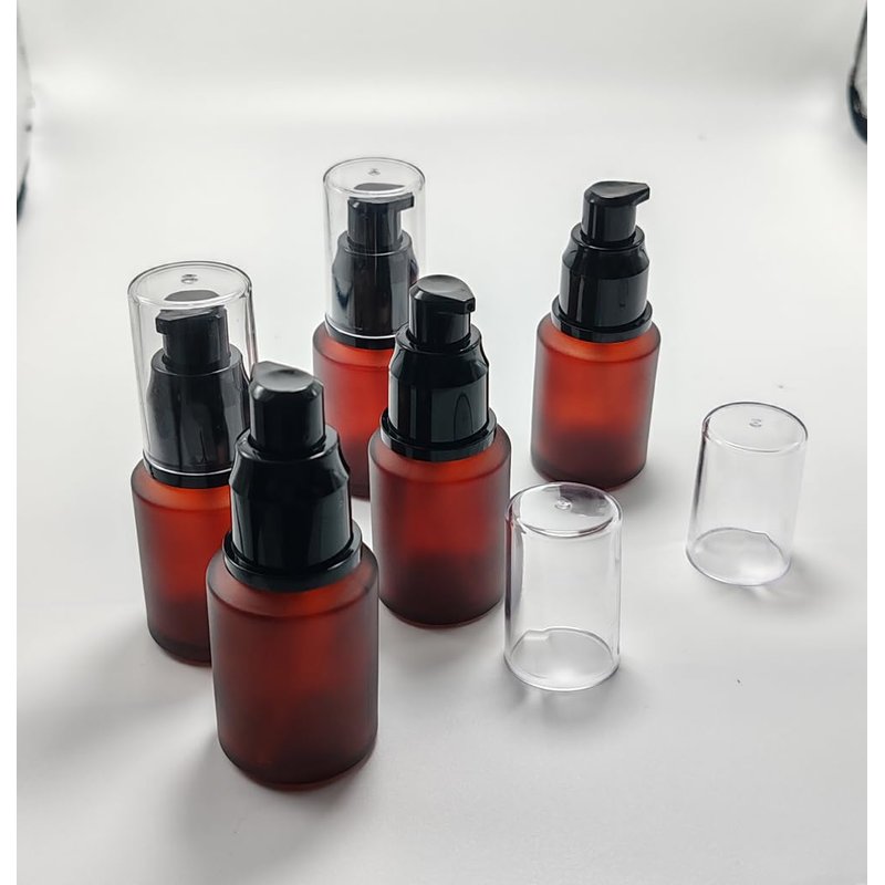 Ericotry 1PCS 30ml 1oz Rose Red Frosted Empty Glass Cosmetic Cream Lotion Pump Bottle with Black Pump Head and Anti-Dust Cap Travel Containers for Beauty Liquid Essential Oil Facial Cream Emulsion