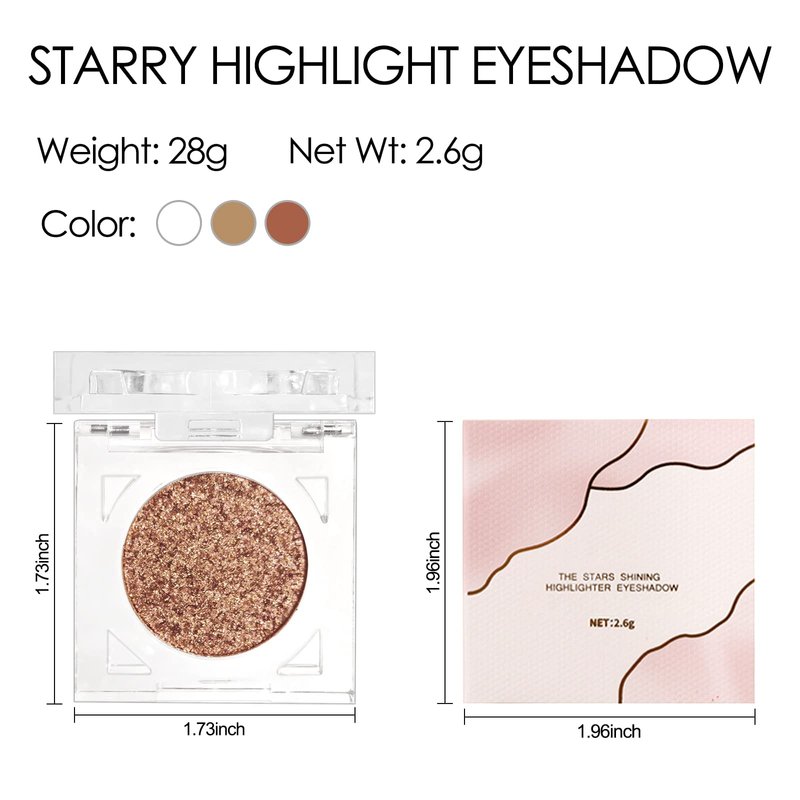 Erinde Shimmer Glitter Eyeshadow Palette, Korean Eye Glitter Makeup, Ultra-Blendable, Sparkle Silver Champagne Gold Eye Shadow, Single Shade Metallic Pigmented Color, 04#