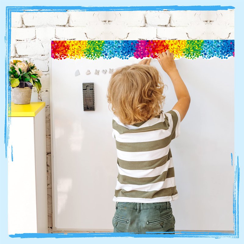 - EXCELLENT DESIGN: The gorgeous trim consist of plenty bright-colored elements, showing continuous rainbow colors. Give a cute touch and eye-catching appearance for school bulletin border or blackboard.