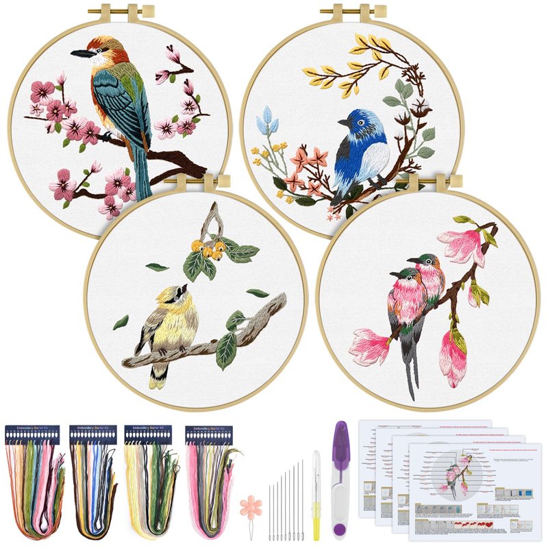 - 【Practical Embroidery Kits】You will receive 1 piece 7.9 x 7.9 inch embroidery hoop, 4 set of enough color threads, 4 pieces 11.8 x 11.8 inch embroidery fabric with pattern, 9 pieces embroidery needles, 4 pieces instructions, 1 piece scissor, 1 piece needle threaders, 1 piece seam ripper. A complete set to satisfy all your embroidery demand.