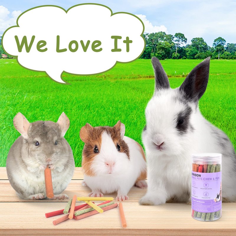 -Pet chewing sticks are loved by small animals and are very suitable for feeding to enhance your relationship! Great for rabbits, bunnies, chinchillas, guinea pigs, squirrels, squirrels, hamsters, gerbils and other rodents.