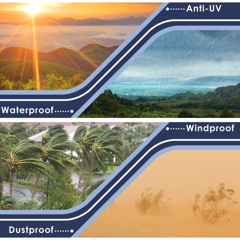 - Material: 210D oxford fabric with silver coated inner lining. It is waterproof, tear-resistant and fade-resistant. Provides good protection in weather such as sun, rain, snow and wind. Easily cope with various severe weather.