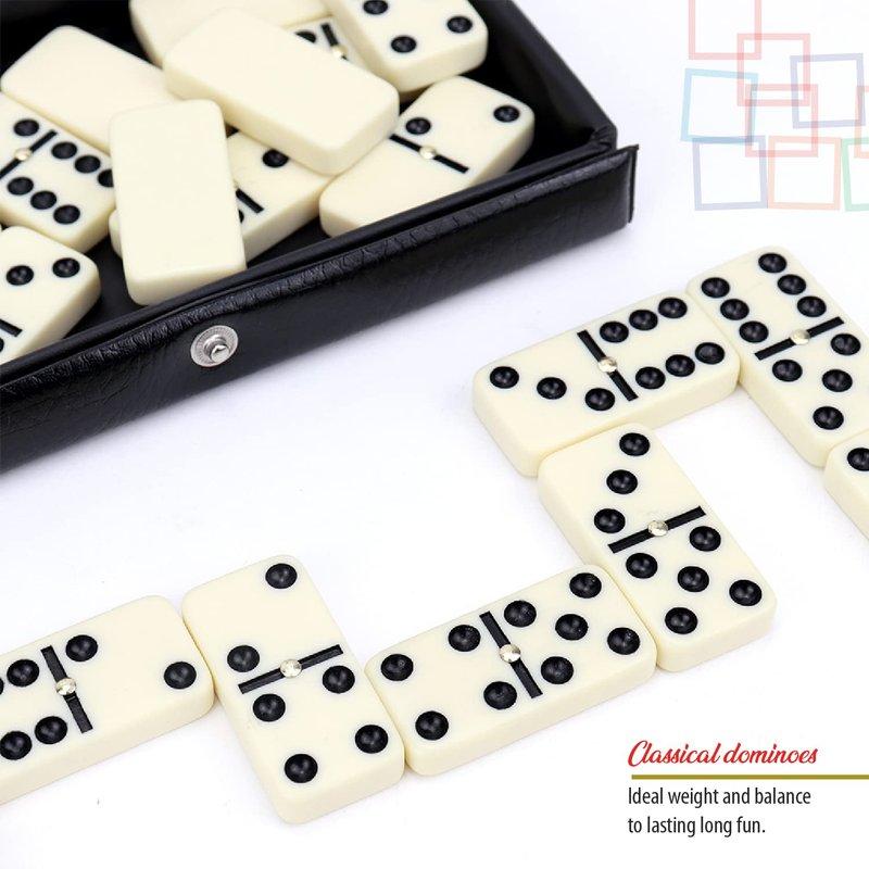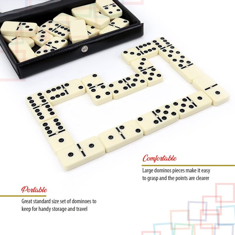 ERLLE Dominos Set Game. Premium Classic 28 Pieces Double Six Domino. Durable Leather Box. Kids, Boys, Girls, Party Favors and Anytime Use. Duoble 6 Dominoes.(PVC Edition)