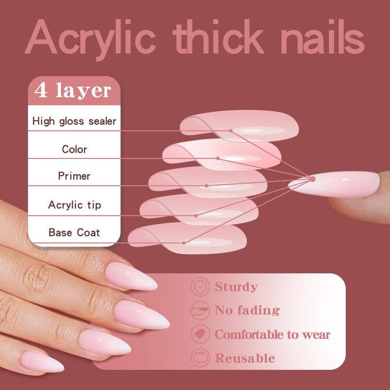 - QUALITY MATERIAL--acrylic press on nails full cover french tip nails made of acrylic ABS,healthy, Quality material acrylic press on nails full cover French tip nails made of Acrylic ABS,healthy, environmentally friendly, shiny, and not easy to break.
