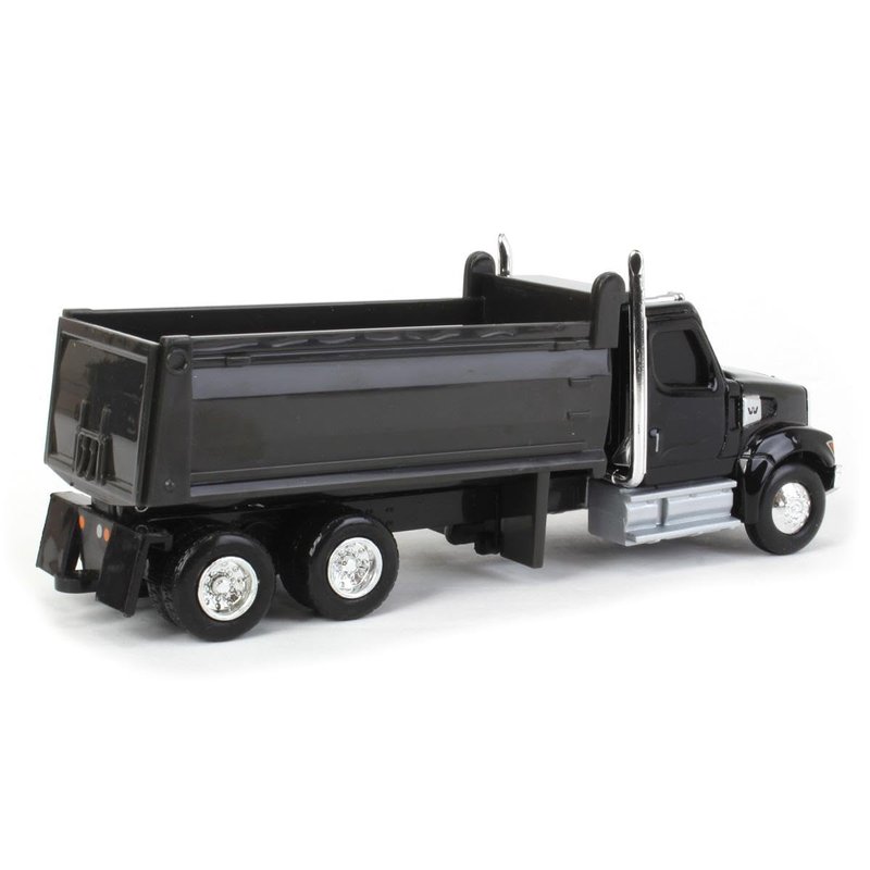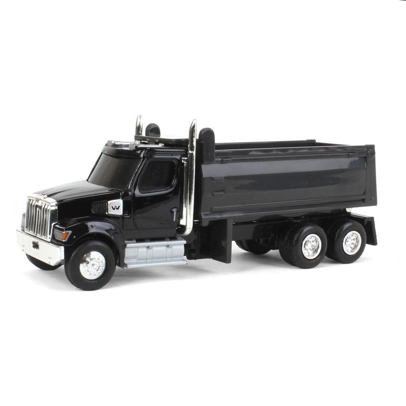 Made by ERTL, the leading in farm toys for over 60 years. This 1/64 scale model of a Western Star Dump Truck is die-cast with some plastic parts. The truck and bed are matted black stripe color scheme. The truck measures approximately 5.5"L x 1.75"W x 2."H and is recommended for ages 3+. *NOTE: Item is sold "loose" - it does not come with any original packaging or blister pack.