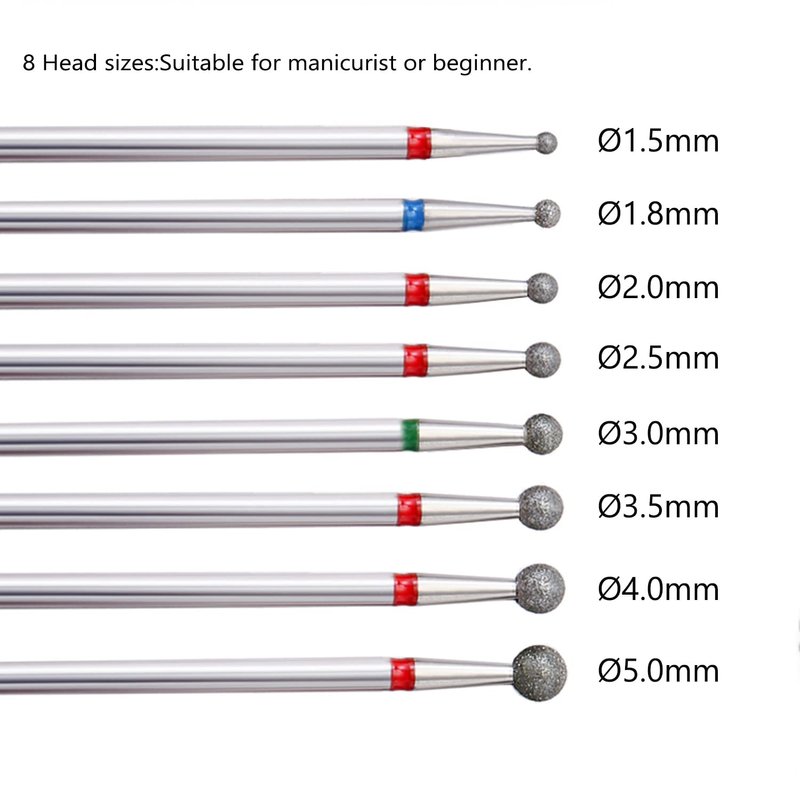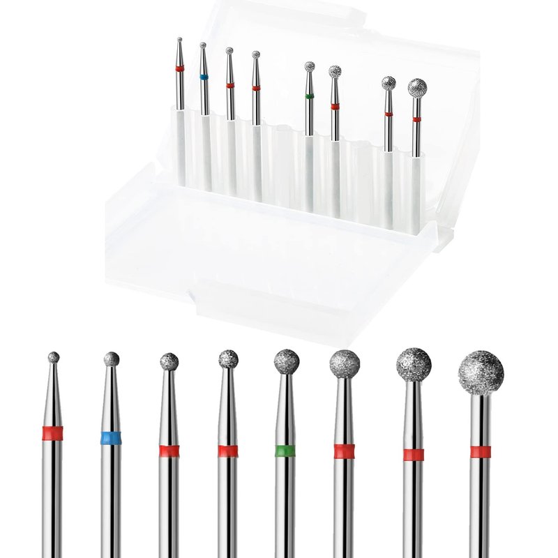 ERUIKA 8Pcs Ball Diamond Drill bits Set, 3/32'' Cuticle Clean Ball Head Nail Bit for Electric Machine, Nail File Gel Polishing Head Acrylic Manicure Pedicure Cuticle Tools(8PCS)