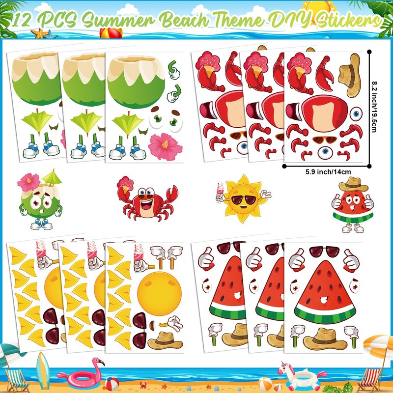 - UNIQUE DESIGN - This party favor adds a lot of classic summer element patterns, like diving goggles, beach balls, swimming ring, flamingo, watermelon, coconut, crab, pineapple, ice cream, juice, beach folding chairs and more, which vivid and cute, full of a strong summer vibe and creating a cool atmosphere for your party, Leaving your guests unforgettable memories!