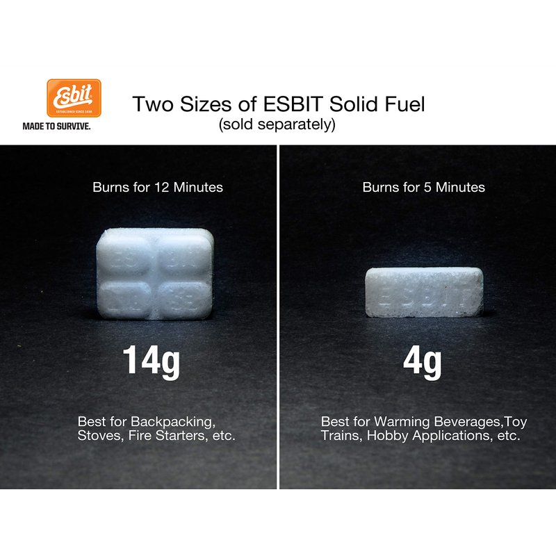 Esbit 4g Solid Fuel Tablets for Backpacking & Camping Stoves & Grills, 1300-Degree Smokeless Emergency Fire Starter Squares, 20 Pack