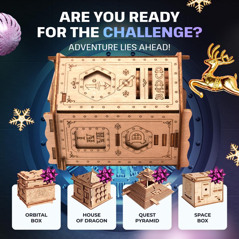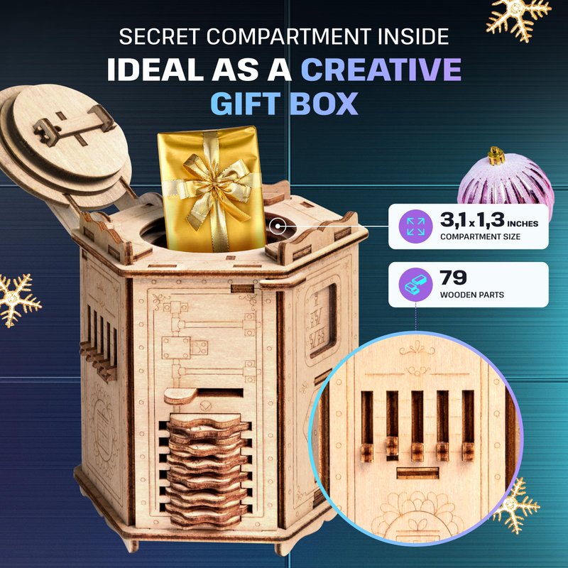 - 💰 ESCAPE ROOM IN A BOX GAME - Immerse yourself in an exciting puzzle-solving experience with this escape room puzzle box. Gradually unlock new ciphers and symbols on the wooden puzzle by solving mind-bending puzzles and moving various mechanisms. This game is based entirely on logical decisions, so no lucky accidents needed!