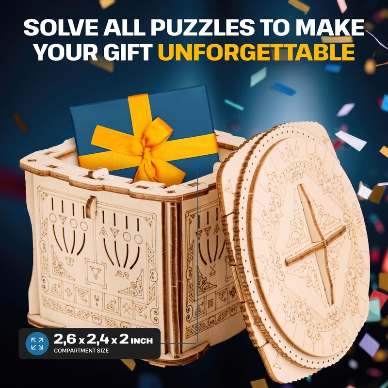 - Suitable for any occasion - Whether it's a birthday, wedding, celebration or simply as a packaging for a gift, this extraordinary wooden gift box is perfect for any special occasion. Make your gift stand out and leave a lasting impression! Surprise your family and friends with this tricky puzzle adventure.