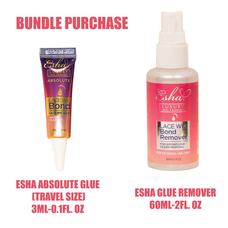ESHA Luxury Wig Fashion Lace Wig Bond. DIRECTIONS: 1. Shake well Make sure to remove all oil and make up residues on application area. 2. Apply a thin layer of ESHA LACE BOND evenly around hairline. 3. When the glue becomes tacky approx. 30 seconds apply lace wig on application area and press for 1 minute or until firmly in place. 4. Make sure the ESHA LACE BOND glue is dry before applying an additional coat for extra strength. YOU CAN CONTROL THE STRENGTH BY APPLYING AN ADDITIONAL COATESHA Luxury Wig Fashion Lace Wig Bond Remover Clean Removal Wig Re Usable Esha Glue Remover was formulated to remove not only Esha Absolute and Esha Firm but all kinds of hair adhesives. This fact acting formula will safely remove any hair unit. Unlike other bond removers Esha will completely dissolve the glue. No glue residue will be leftover. Your removal process will be spotless and trouble free. It is gentle on your skin and will rinse off with water. For the best results wait 3 minutes or until the glue is dissolved and your wig will be off instantly. DIRECTIONS: 1. Gently lift the wig and spray on scalp. 2. Massage product in. 3. Let sit for 3-5 minutes. 4. Wipe off. 5. Follow up with a clarifying shampoo to rid leftover residue Product. 6. Repeat if necessary