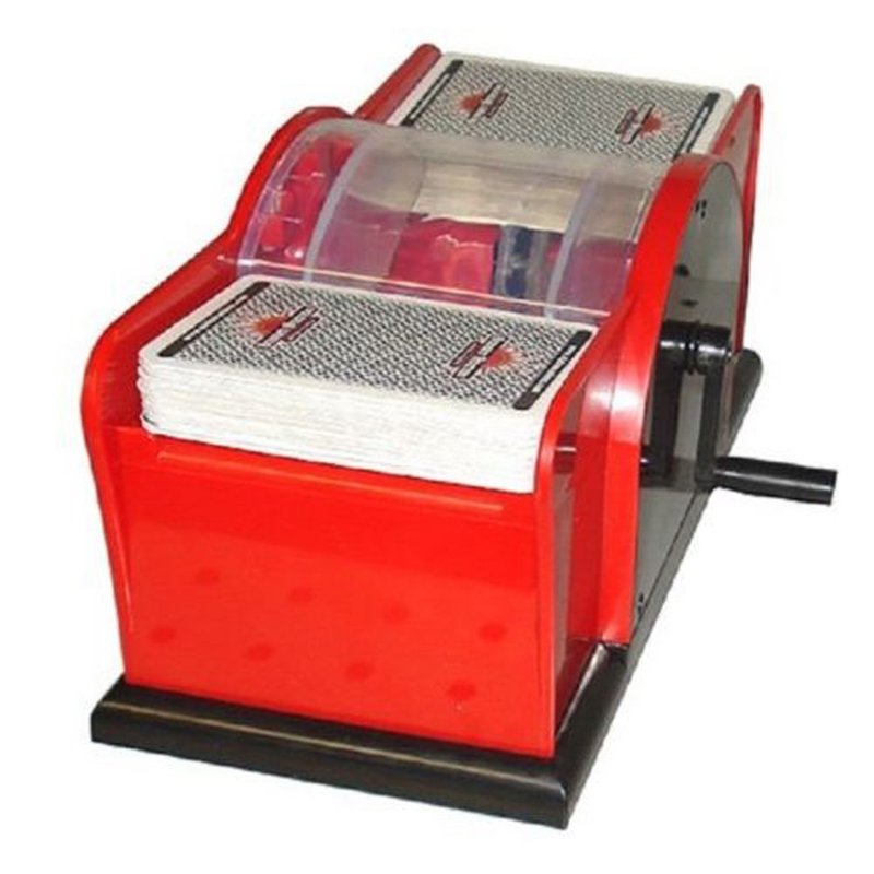 - This Manual Card Shuffler (2 Decks) is hand cranked.