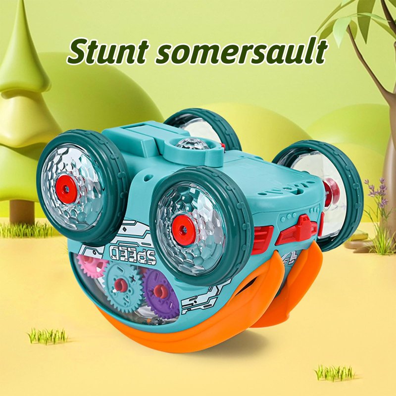 - 【Fuel The Excitement 】This dynamic gear-powered car with LED lights can perform all kinds of exciting stunts. It can lift the front wheel for wheelie, rotate 360 degrees and flip, making playtime more dynamic and fun. This will stimulate curiosity in children aged 1-3, learn the physics of mechanical movement and exercise their powers of observation.