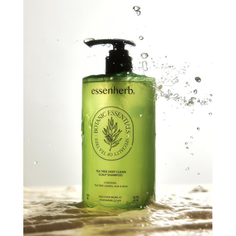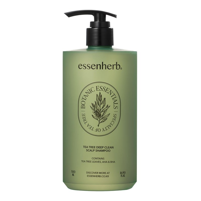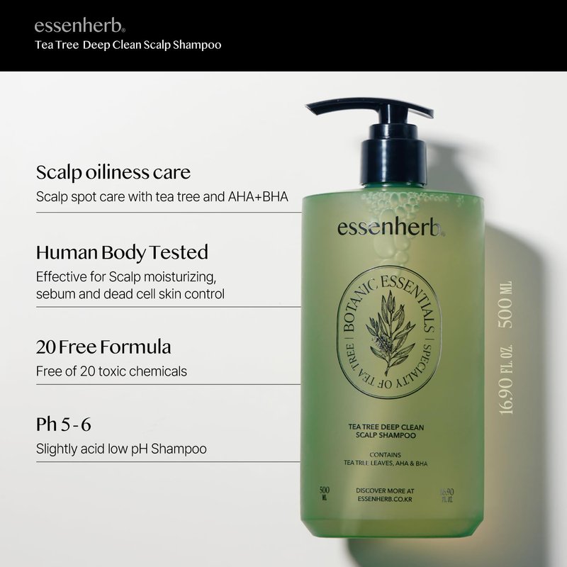 ESSENHERB Tea Tree Deep Clean Scalp Shampoo For Oily Hair | AHA & BHA Vegan Shampoo | mildly acidic pH 5-6, Made in Korea (16.90 fl oz, 500ml)