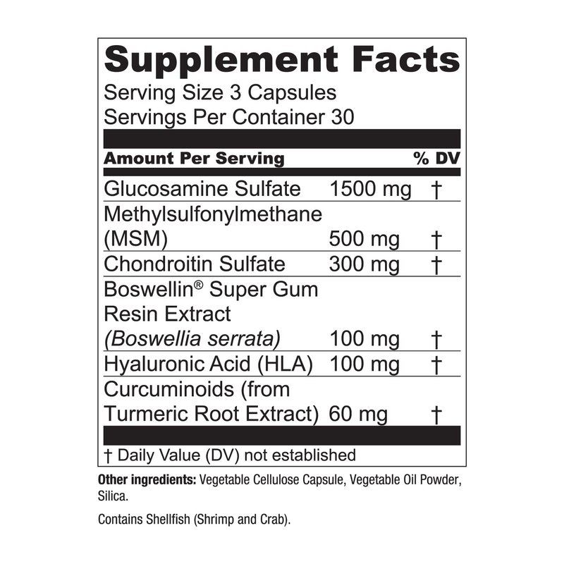 - TARGETED JOINT SUPPORT: Glucosamine and Chondroitin are two well-known ingredients for supplements.* This formula uses them in conjunction with curcuminoids, boswellia, HLA, and more to make a comprehensive joint health supplement all in a once-daily routine.*