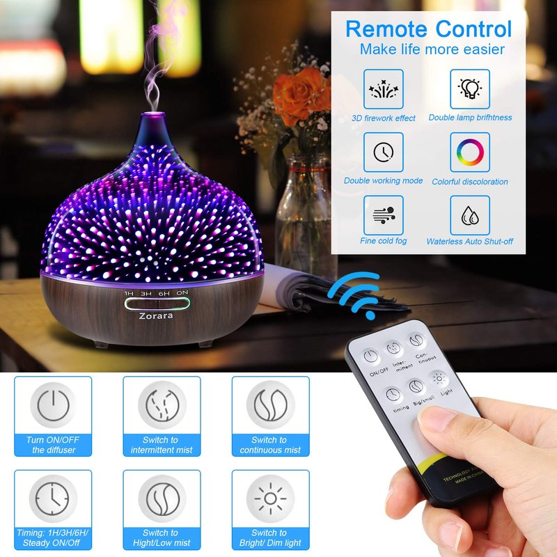 - ♨ Creative & Practical Gift Idea ♨ Zorara 550ml 3D affect large tank glass humidifiers is exactly what you are looking for your family and friends. Besides, you can also use it as a stunning night light. Smooth the pressure, balance mood, especially creates a romantic atmosphere and relieve the winter dryness effectively. It is a very good Christmas idea & household gifts.
