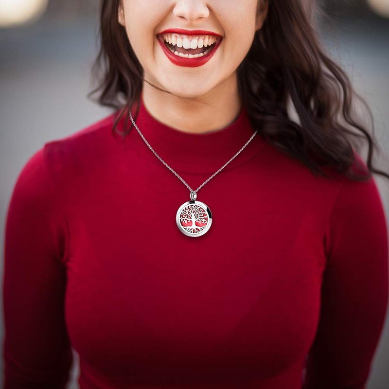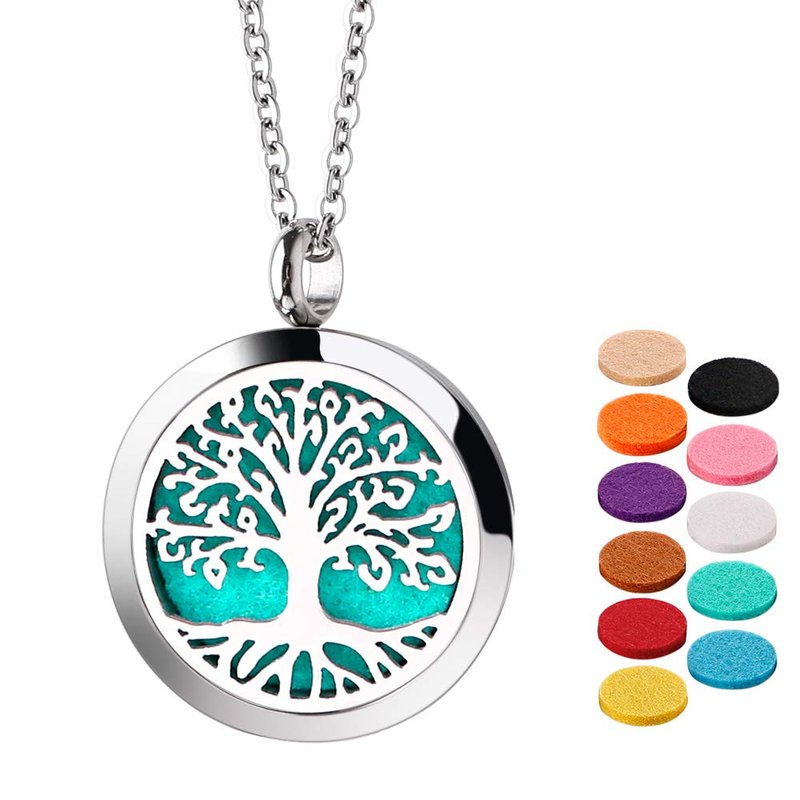 Essential Oil Necklace Diffuser Necklace Stainless Steel Not Fade Gift Set for Women and Girls 30mm Tree