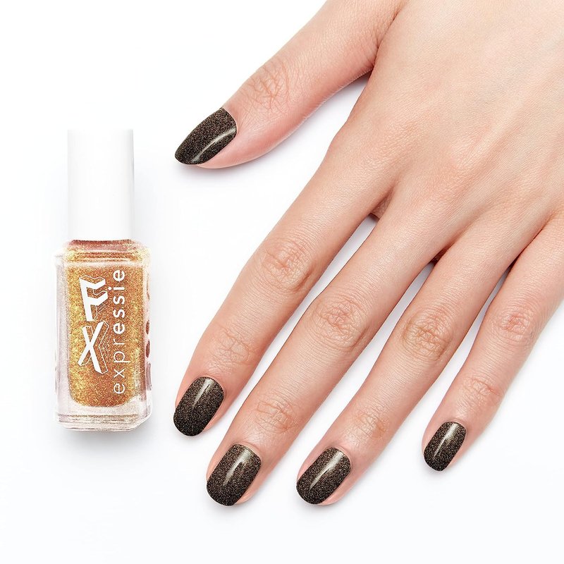- Fast-Drying Nail Polish Top Coat: This quick-dry nail polish features yellow, orange, and red glitter and a shimmer finish; Use over any Expressie color for an instant 24k liquid gold effect
