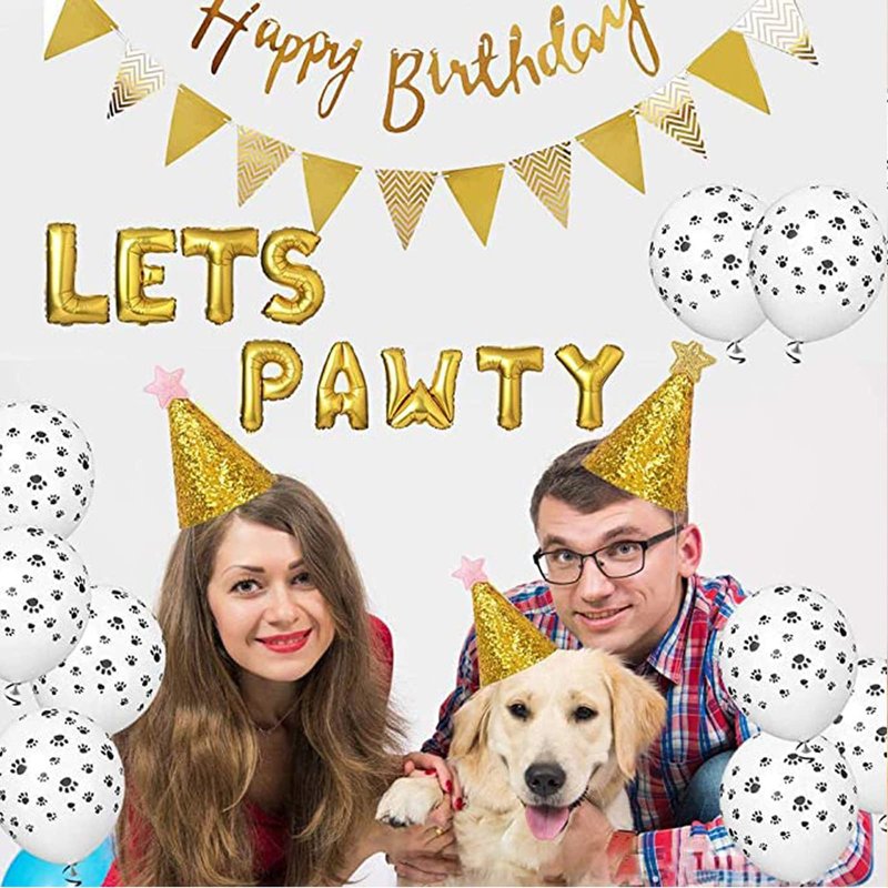 - 【Pefect gift】You will get 10* latex balloons, 1 set LETS PAWTY Foil balloon, 1* happy birthday banner, 1* Triangle flag banner, 2* conical hat,it will be a special day and unforgettable birthday party.