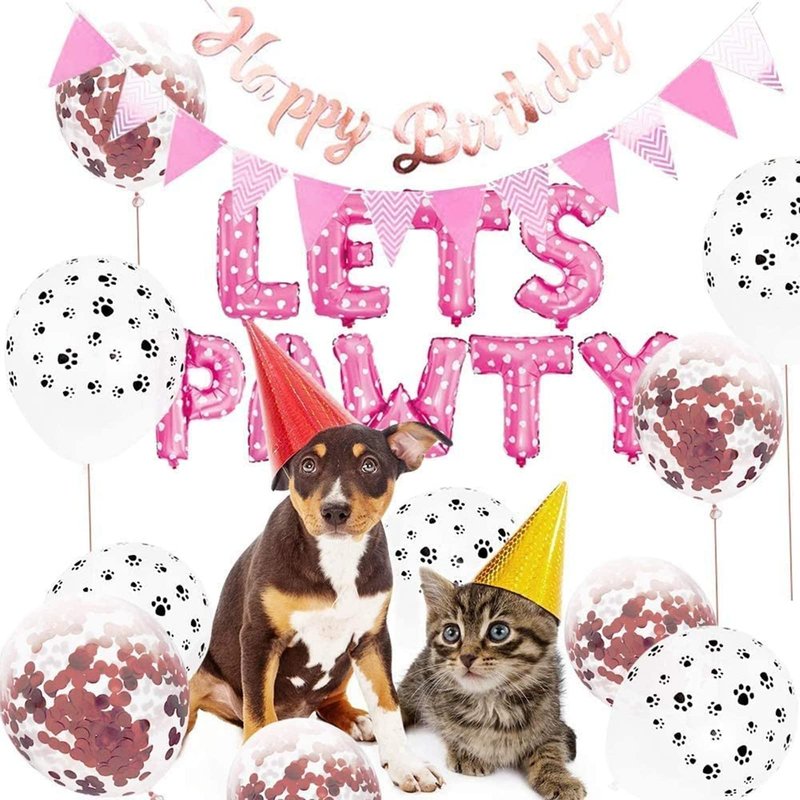 Esweny Dog Cat Birthday Party Supplies,Dog Paw Print Balloons Sequined Balloon,Lets Pawty Balloons, Happy Birthday Banner Foil Balloons Pet Party Decoration