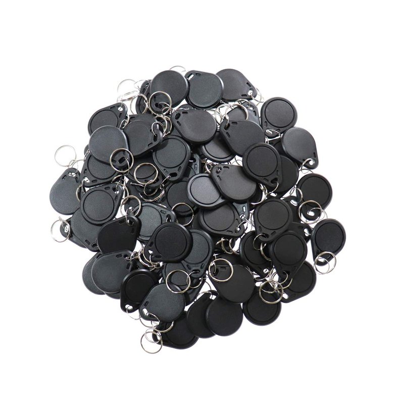 Note: These are 13.56MHz key fobs (tags). If you want to register them to your lock system, please ensure that your system uses the same frequency 13.56MHz. Incompatible with other frequencies like 125kHz. Read only. Not re-writable. Each key fob is already pre-programmed. You cannot re-program them by a card writer. Compatible with MIFARE Classic 1K Card (M1 Card). If your lock uses M1 card, these key fobs work for your lock too. Suitable for 13.56MHz RFID proximity access control system and ID management system. For example, register them to your RFID door lock as new keys if applicable. Approx. Fob Size: 1.58*1.26*0.18 inch. Casing Material: ABS Plastic. Color: Black. Package includes 100 Pieces.