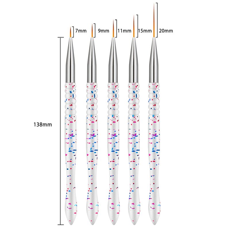 - Professional Nail Art Brusher Set: The nail art brush set contains 5 different size nail brushes, Sizes for Nail liner brushes heads: 7mm, 9mm, 11mm, 15mm and 20mm.These nail brushes can achieve the tiny details and fine lines needed for painting nail designs, which are perfect for professional nail salon and nail art lovers