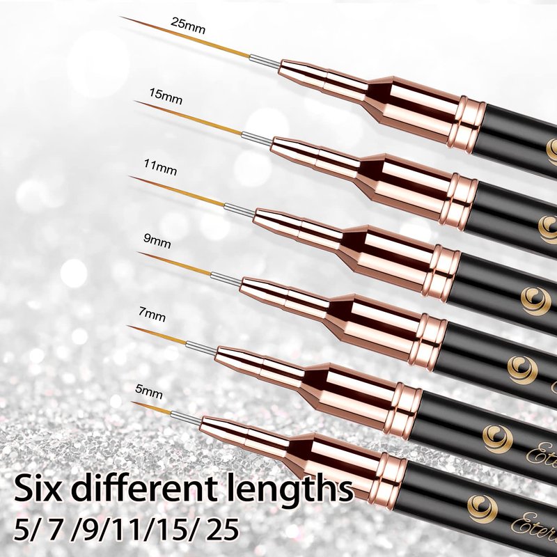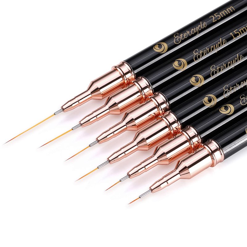 Etercycle Nail Art Liner Brushes, 6pcs Striping Nail Gel Polish Painting Brush Set, Thin Nail Art Dotting Drawing Pen (5/7/9/11/15/25mm)