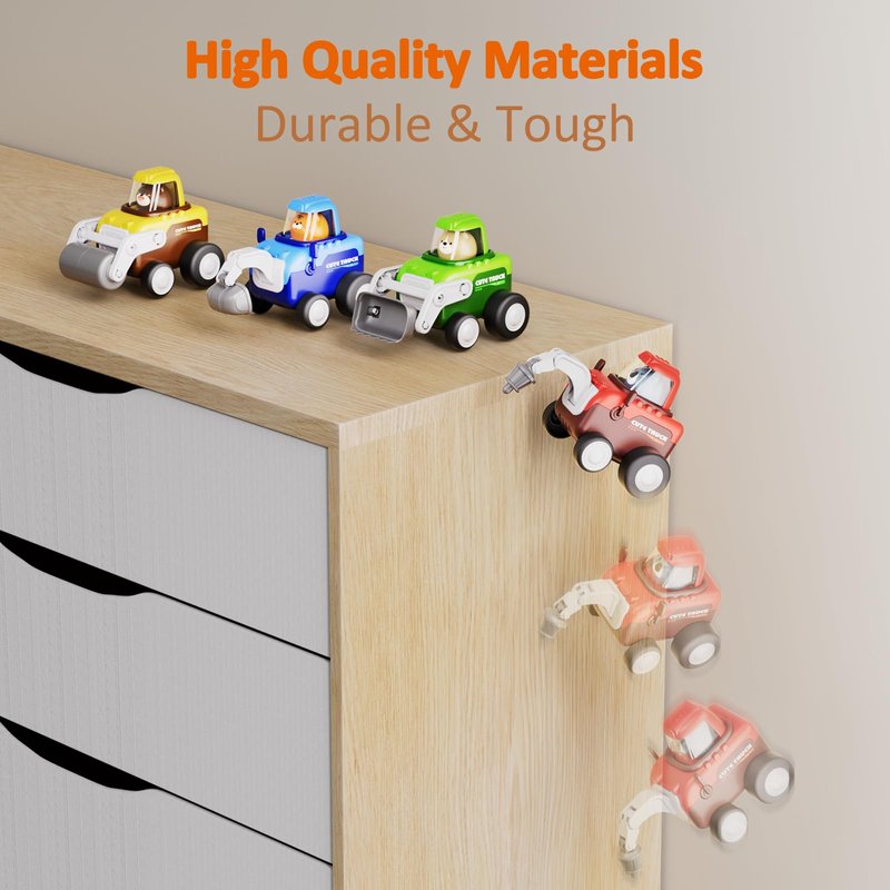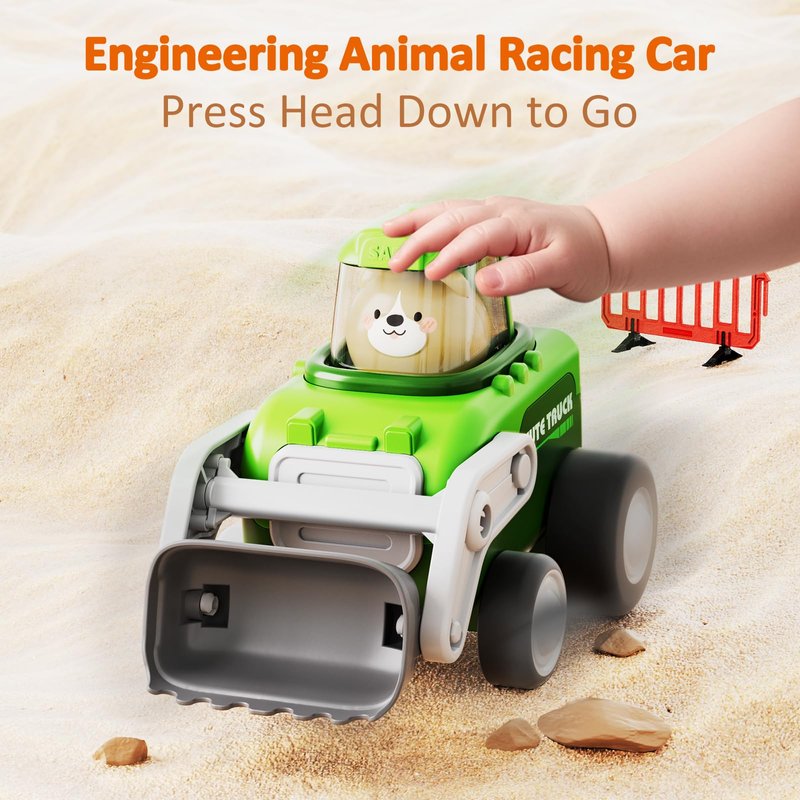 - 【Press to Go Cars】Our engineering press the car is easy to play and interesting for children. What they have to do is to press down the car's head and watch it walk! It is simple, interesting, and does not require battery.