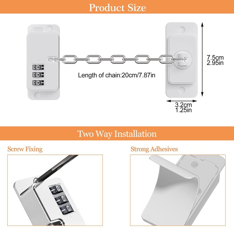 - 【Adjust Length Refrigerator Lock】This window locks allows you to easily adjust the length of the chain, making it suitable for use on windows. length of the steel wire 7.8 inch (20cm)(Adjustable). It enables you to meet ventilation needs while providing a safe environment for your baby.