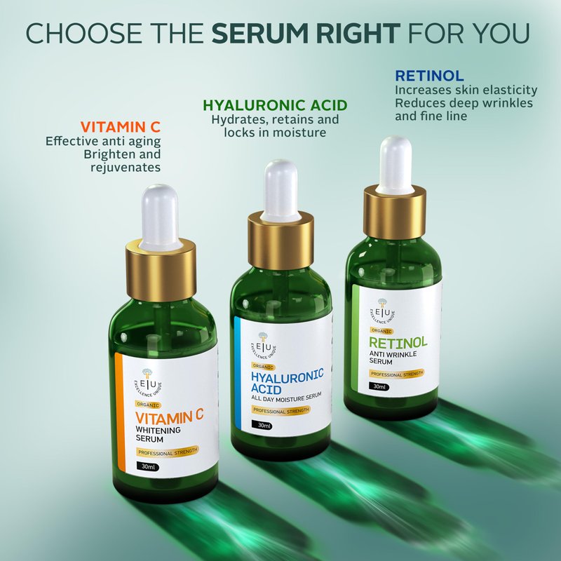 Discover the secret to timeless beauty with Excellence Unique's premium range of organic, professional-strength anti-aging serums. Specifically formulated to replenish and rejuvenate your skin, our serums are a testament to our commitment to quality and effective skincare. Infused with ingredients like Vitamin C, Hyaluronic Acid, and antioxidant-rich botanicals, these face serums are designed to restore your skin's youthful radiance and provide deep hydration.