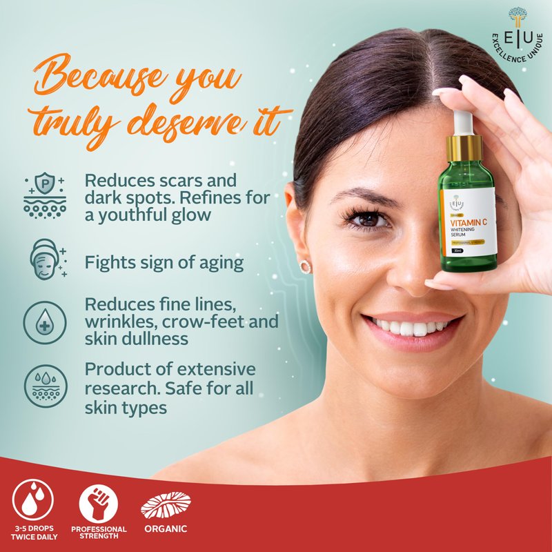 EU Pure Vitamin C Serum for Face - Vitamin C Serum - Anti-Aging Serum - Brighten, Firm, and Hydrate Your Skin with Our Vitamin C Face Serum - Professional Strength, Organic, and Daily Moisturizer