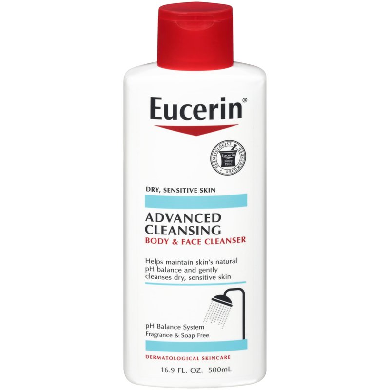 Eucerin Advanced Cleansing Body and Face Cleanser, PH-Balanced, Gentle Face and Body Wash for Normal to Dry, Sensitive Skin, Free of Soap, Fragrances, Dyes and Parabens, 16.9 Fl Oz Bottle