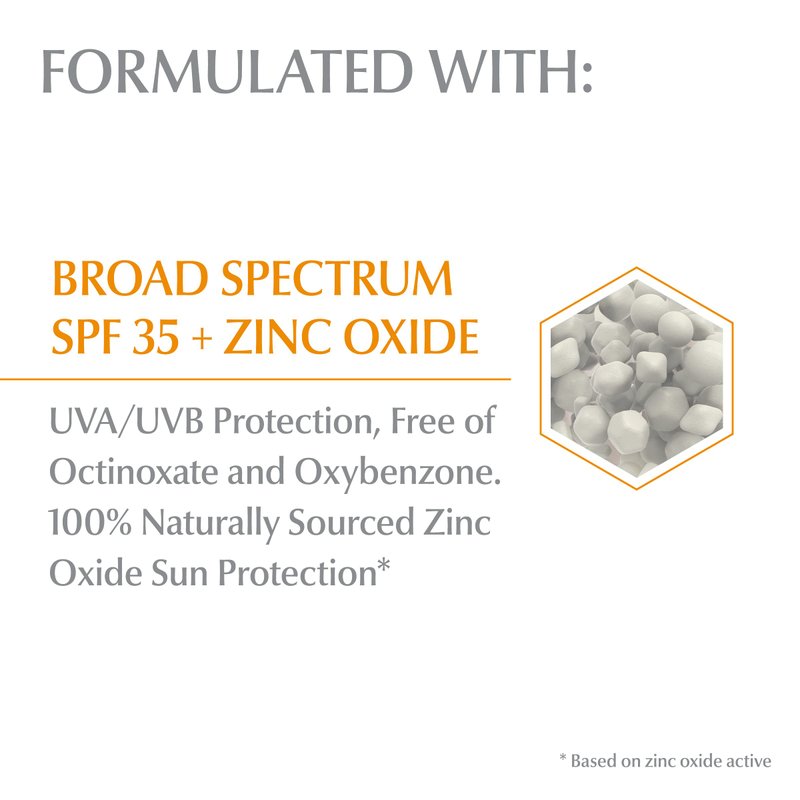 - Zinc Oxide Sunscreen: Gentle facial sunscreen formula with Broad Spectrum UVA/UVB protection based on a mineral filter (Naturally Sourced Zinc Oxide(1))