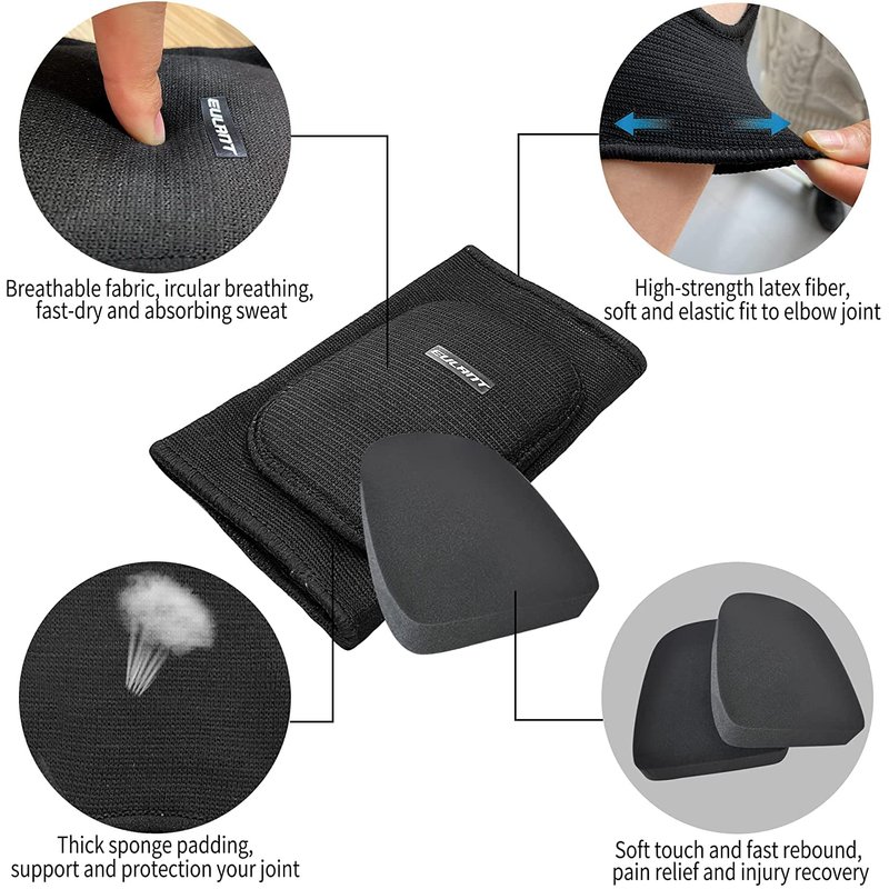 - Confortable and Breathable Material: EULANT elbow pads Made of high quality cotton & latex. Features of comfortable skin - friendly fabric material that allows your skin to breathe, allowing you to comfortable and relaxed all day wearing, and the thickened sponge pad, which is impact resistant and can effectively relieve the pain caused by the impact of cement, bricks or hard floors.