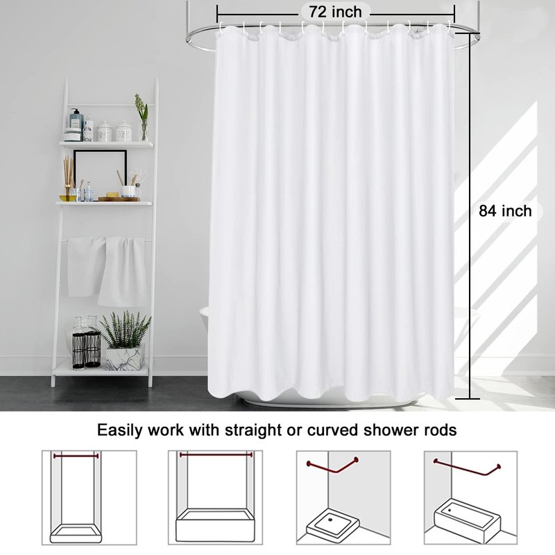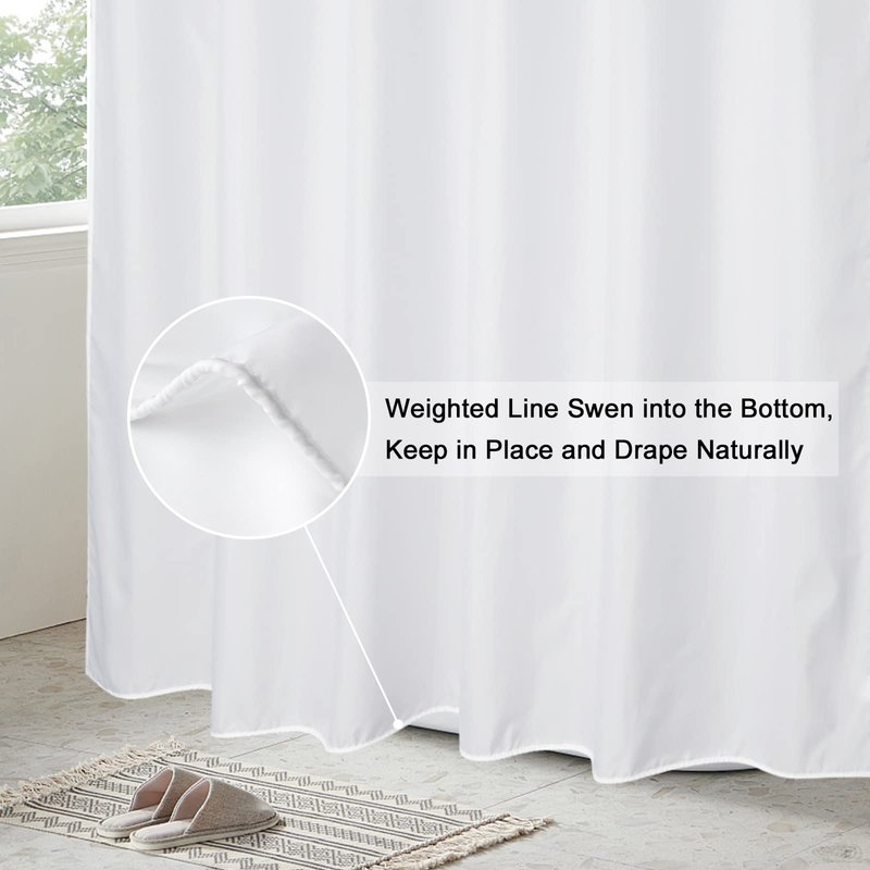 - ▲Easy decor: Solid white shower curtain with good elegant drapes is classical suitable for any bathroom. Brings minimalist, simple, generous style to your bath. Elegant and upscale look easy to update bathroom décor theme