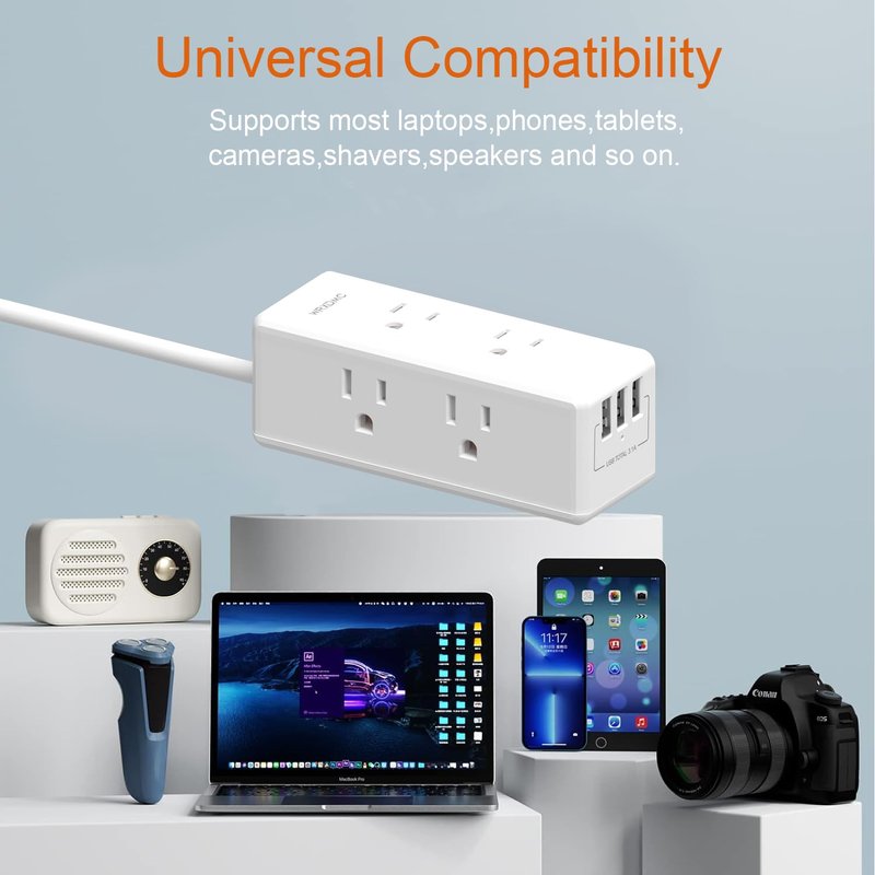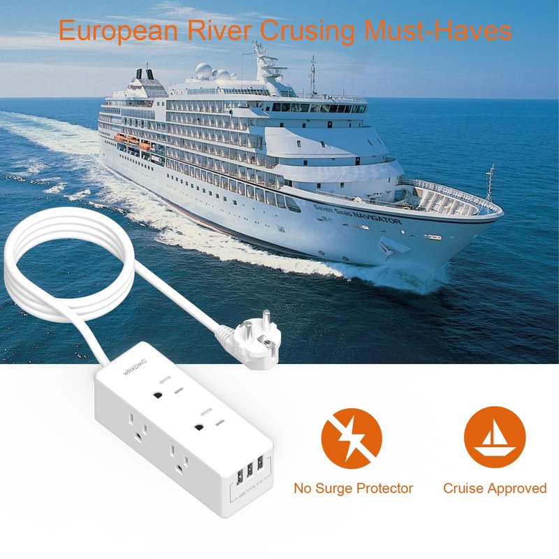 - 【Compact Size/Cruise Ship Must Haves】- This small power strip is designed with No surge protection, making it fully cruise ship approved.Small size of 4.8*1.8*1.8 IN can easy fit into luggage or briefcases,compact and lightweight, which helps to save your precious luggage space.This outlet extension cord is perfect for cruise ship,europe travel, etc(Tips: Does NOT work in ITALY, Israel, UK)
