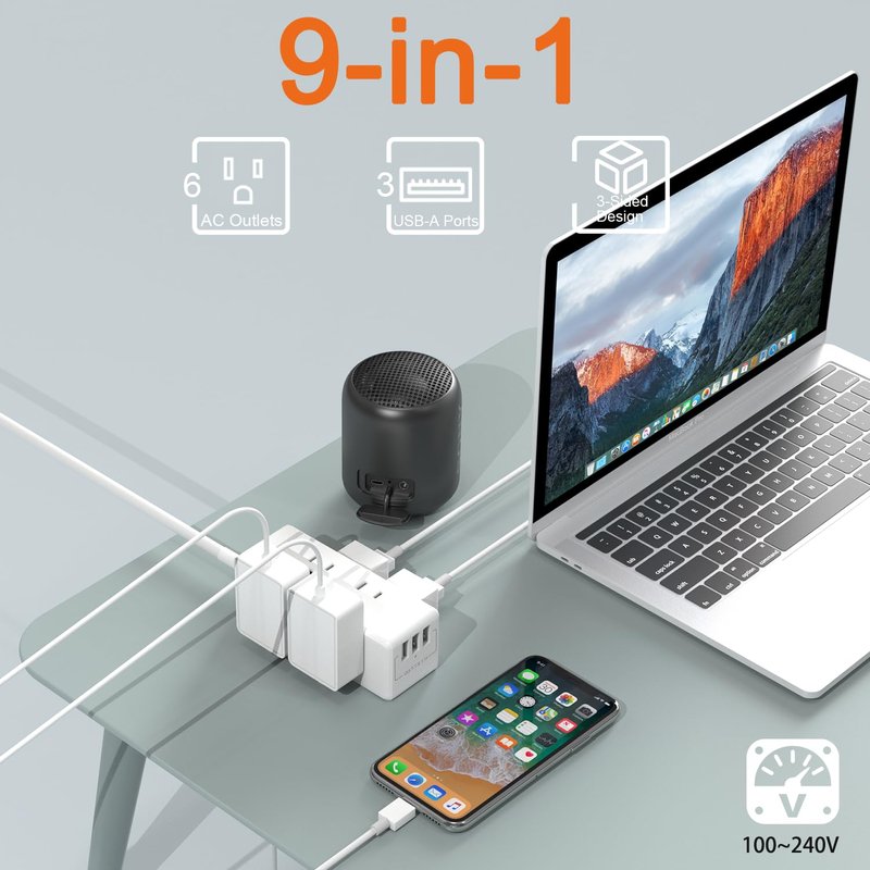 - 【9 IN 1 European Plug Adapter with USB】- This adapters for European outlets can turn 1 Europe Type E/F socket into 6 American AC outlets and 3 USB ports, charge 9 devices at a time; 3 USB ports can charge up to 3.1A, compatible with cellphone, tablet, camera ect; No need to carry extra adapter and power strip for your traveling, this Type E/F plug adapter can save your suitcase space.