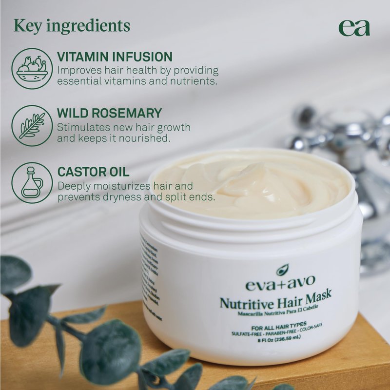 Eva + Avo Hair Conditioning Mask, Deep Conditioner for Dry Damaged Hair - Hydrating Hair Mask with Avocado, 8 Fl Oz - Paraben and Sulfate-Free