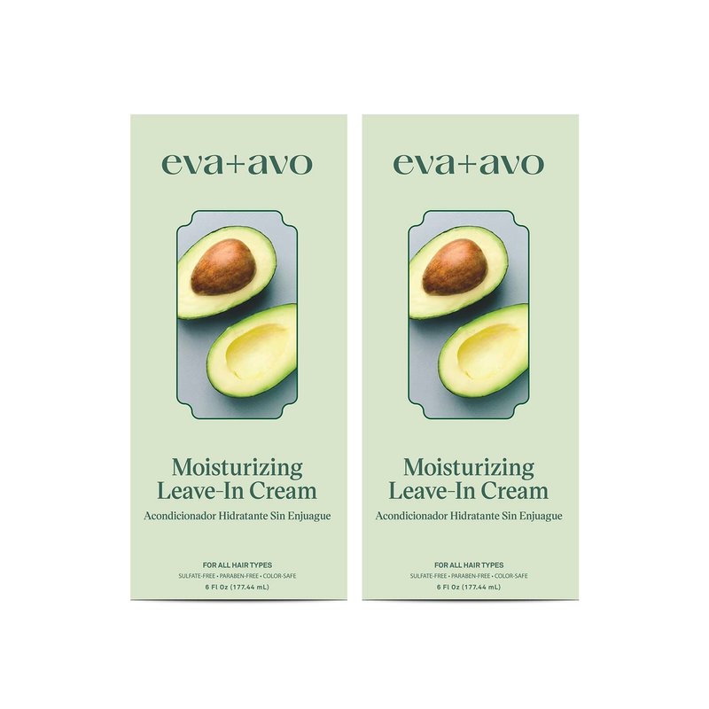 Eva + Avo Leave In Conditioner Cream – Hair Moisturizer Cream for All Hair Types – Paraben and Sulfate-Free Leave In Hair Conditioner – Hydrating Hair Treatment with Avocado and Rosemary - 2-Pack