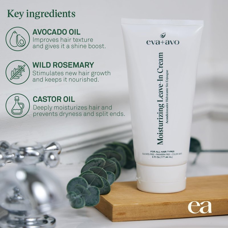 - MADE WITH CLEAN INGREDIENTS: The eva+avo moisturizing conditioner is crafted with carefully selected ingredients, such as avocado oil, rosemary, castor oil, nutrients and vitamins without parabens, sulfates or harsh fillers.