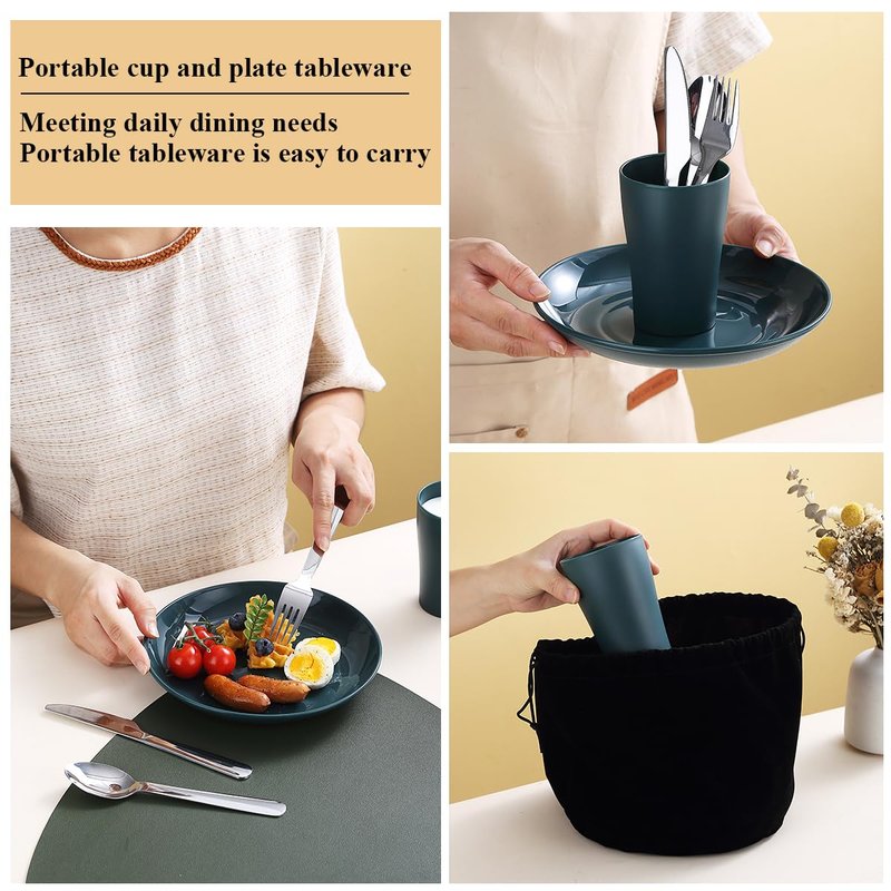 - HIGH QUALITY: The plates and cups of this camping set are made of pp material, BPA free, non-toxic and odourless. They are lightweight, unbreakable and sturdy, the stainless steel cutlery is made of high quality stainless steel, sturdy and durable.