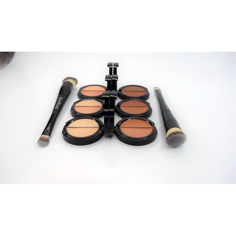 EVE PEARL Dual Salmon Concealer and 202 Concealer Blender Brush. The Concealer is a luxurious, lightweight cream. the two shades are with the ideal combinations to ensure the ended result that helps to neutralize the look of dark blue undertones and then brighten the look of skin for maximum benefit with a matte finish. Anyone who wants to conceal the appearance of darkness around eyes and to help brighten and enhance the look of the eye area. For anyone who wants an eye cream to provide coverage and be long lasting. Ideal for Sensitive, acne prone and mature skin. The 202 Concealer Blender Brush perfectly fit the Salmon concealer.