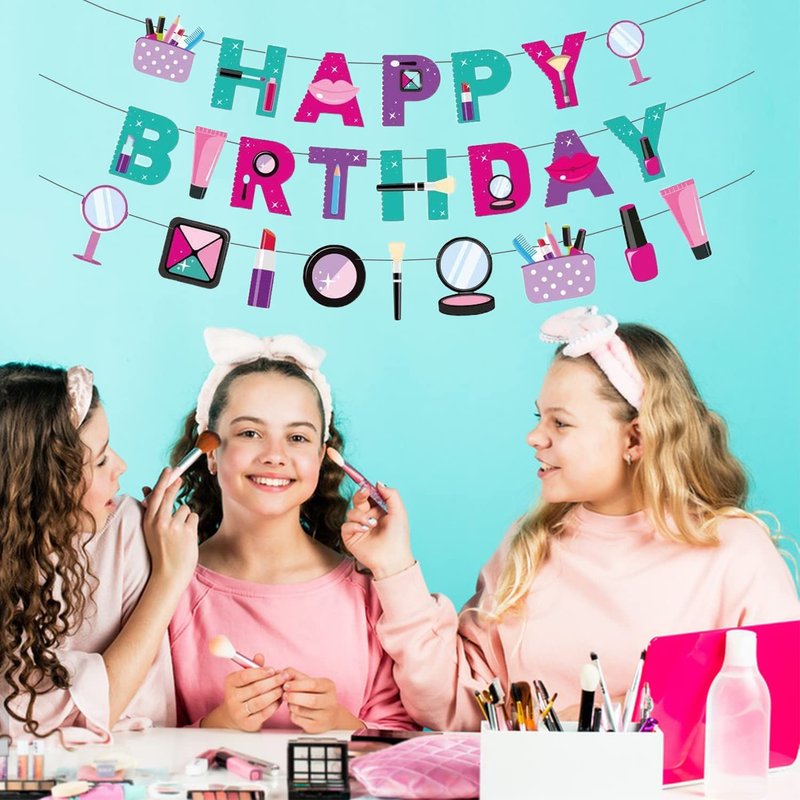- 【Easy to Use】You can be ready to use this makeup birthday party garland without assembling by yourself. You can hang it on the wall/ door/ tree branch where you want to decorate it, and use it together with other spa party decorations to enjoy a happy birthday party.